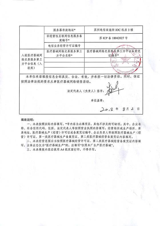• 醫(yī)療器械網(wǎng)絡(luò)銷(xiāo)售信息表反面