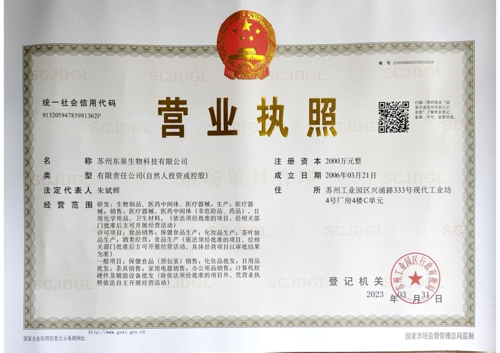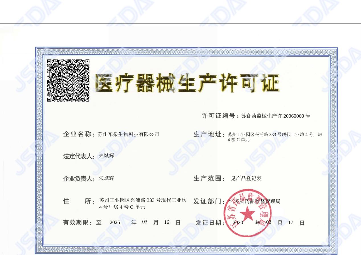 蘇州東泉生物科技有限公司是專(zhuān)業(yè)從事醫(yī)療器械產(chǎn)品研發(fā)、生產(chǎn)、銷(xiāo)售的高新技術(shù)企業(yè)。